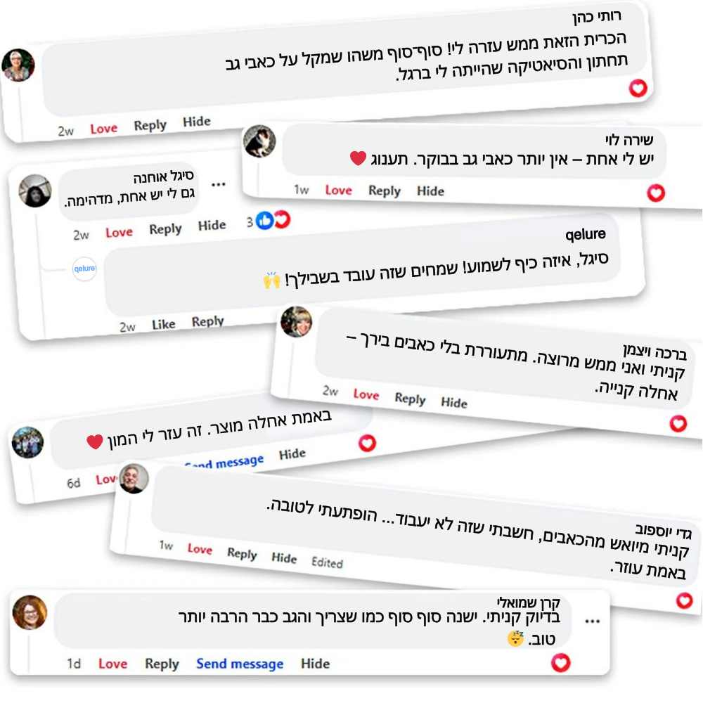 רבים דיווחו על ירידה משמעותית בכאבי הגב והמפרקים, תחושת הקלה בירכיים וברגליים, ושינה הרבה יותר עמוקה.