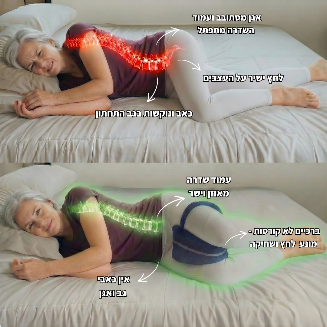 בניגוד לכריות רגילות שבורחות, משתטחות ולא תומכות - כרית הרגליים שלנו מעניקה יישור נכון, נוחות ותמיכה שמרגישים כבר מהלילה הראשון.